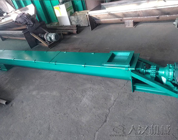 螺旋輸送機(jī)一般由輸送機(jī)本體、進(jìn)出料口及驅(qū)動(dòng)裝置三大部分組成;螺旋輸送機(jī)的螺旋葉片有實(shí)體螺旋面、帶式螺旋面和葉片螺旋面三種形式,其中,葉片式螺旋面應(yīng)用相對(duì)較少,主要用于輸送粘度較大和可壓縮性物料,這種螺懸面型,在完成輸送作業(yè)過(guò)程中,同時(shí)具有并完成對(duì)物料的攪拌、混合等功能。
