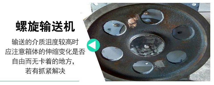 (3)輸送量不可過載,否則物料排不出,引起螺旋軸彎曲和箱體漲壞。