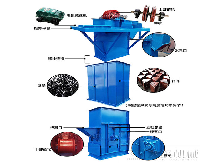 3、 鏈條及料斗安裝好以后,進(jìn)行適當(dāng)張緊。